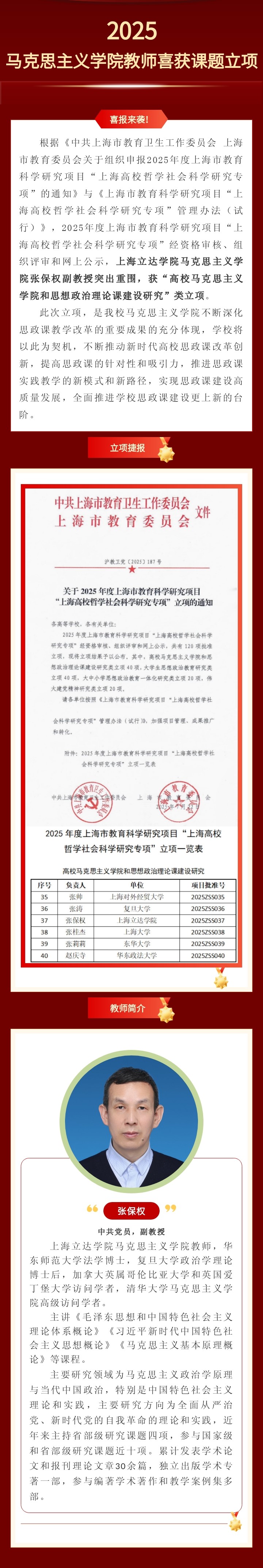 上海立达学院马克思主义学院党员教师张保权喜获课题立项