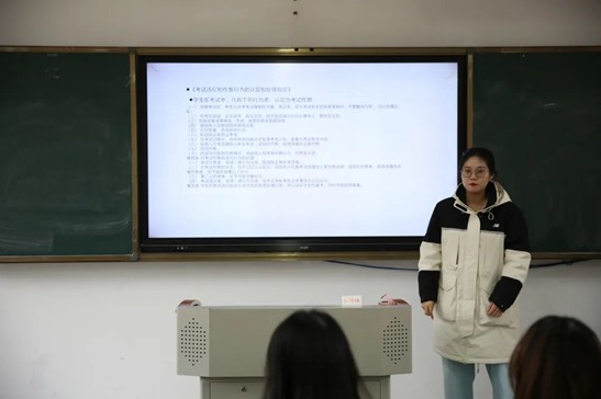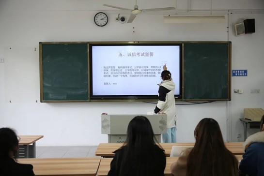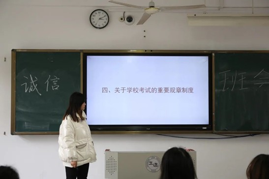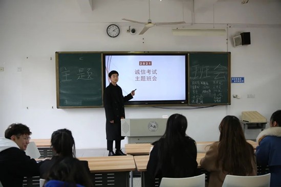 临近考试周,为了让同学们在迎接假期的同时做到诚信考试以及假期安全防疫,传媒学院辅导员们于2021年12月21日在各班级召开主题班会。考试不仅是检查教师教学效果和学生学习情况的评价手段,也是一种敢于正确评价自己,勇于承认学习上的不足,严于自我约束的考验。诚信考试有助于大家在考试中排除外界的干扰,正确认识到考试的重要性,诚信考试有助于提高大家的自身修养,让每个人都成为一名诚信的好学生。